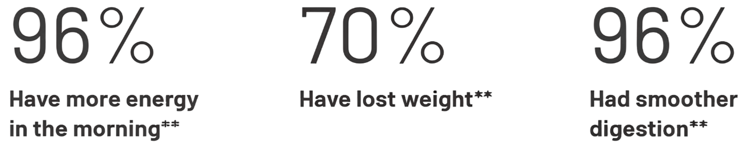 **4 week study of 23 respondents ages 40-75, using the product Morning Kick®. Respondents were compensated to share their experiences. Not a scientific study. Individual results can and will vary.